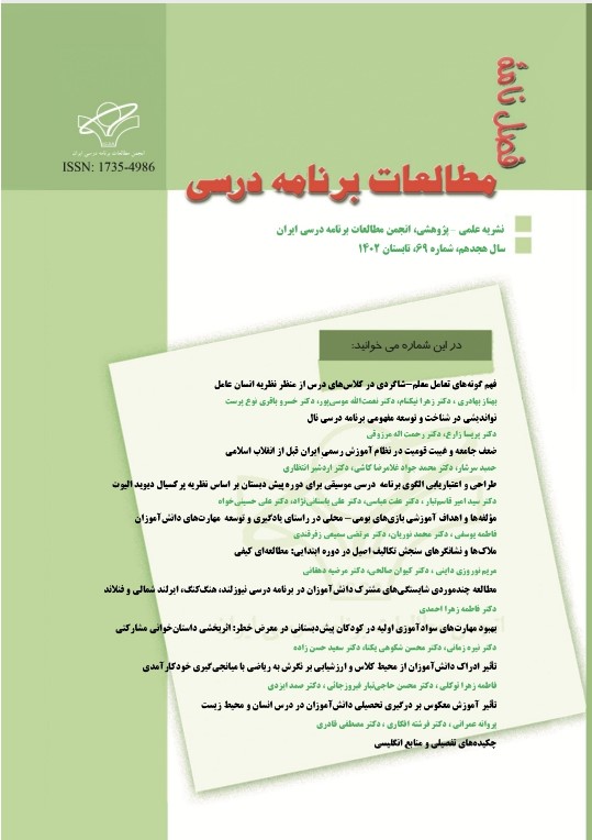 فصلنامه مطالعات برنامه درسي: سال هيجدهم، ش. 69، تابستان 1402 ، ص. 68-37