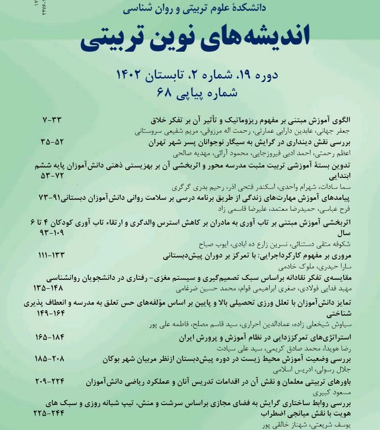 فصلنامه انديشه هاي نوين تربيتي، دوره 19، ش. 2 ، پیاپی 68، تیر 1402 ص.184-165