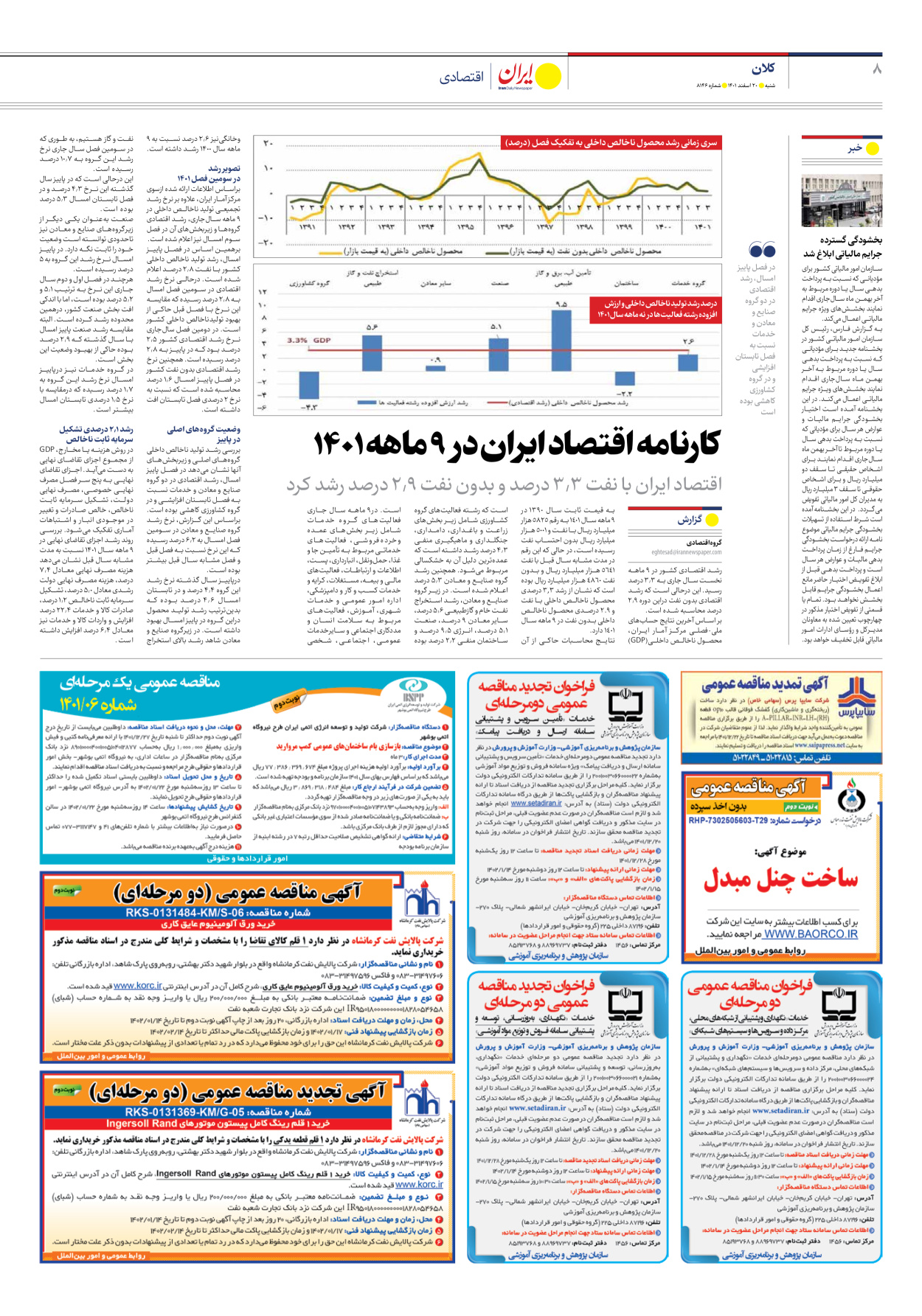 روزنامه ايران ص  8 مورخ  20/12/1401