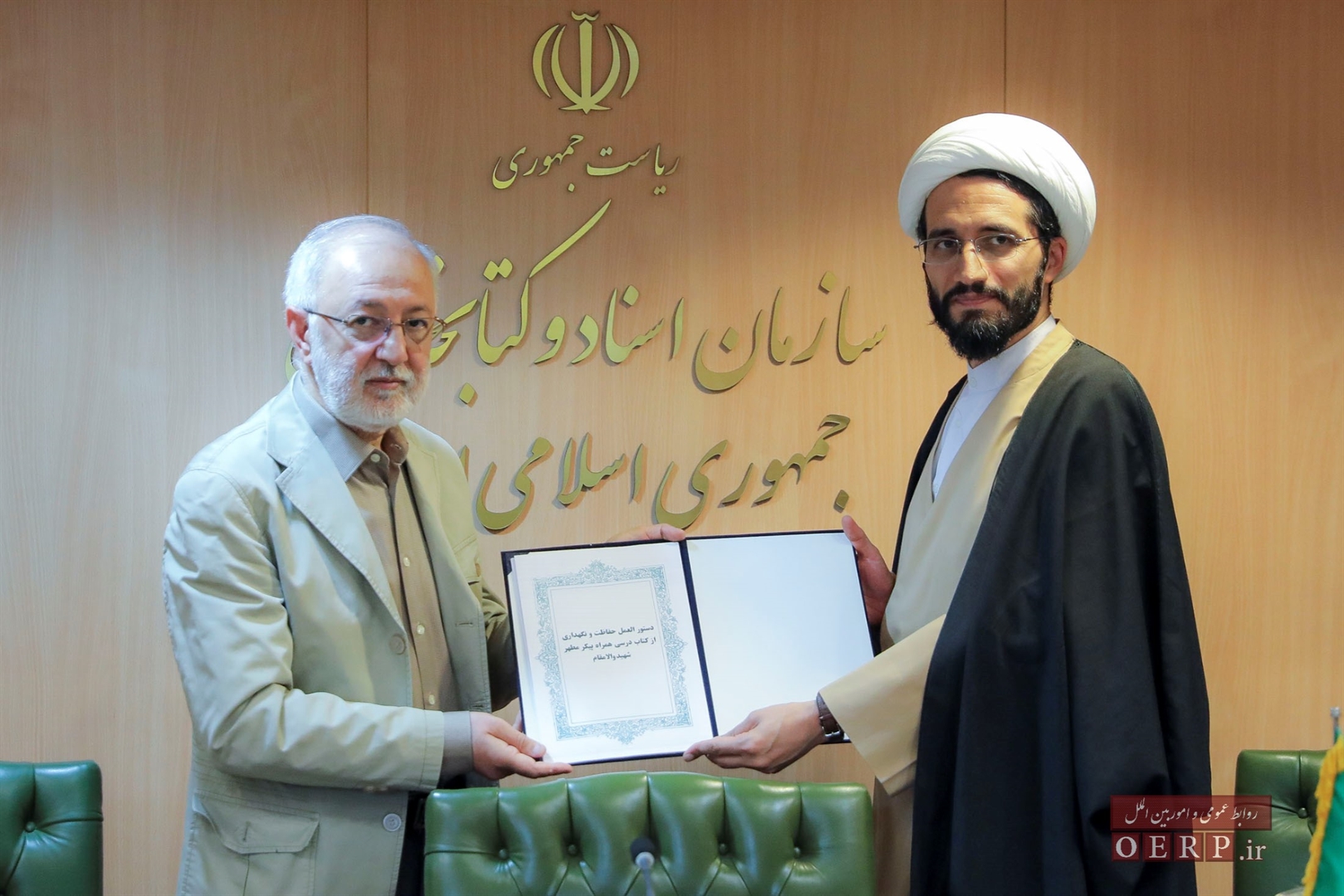 آيين تحويل كتاب درسي مرمت شده شهيد دانش آموز در سازمان اسناد و كتابخانه ملي ايران