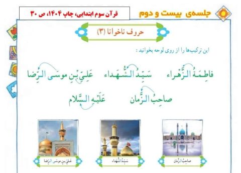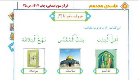 - تصاویر بیتالمقدس و نهجالبلاغه (کتاب قرآن پایه سوم، ص ۲۵)؛