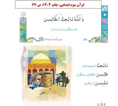 - تصویر قدس و شهید فلسطینی محمد الدرّه (کتاب قرآن پایه سوم، ص ۶۷)