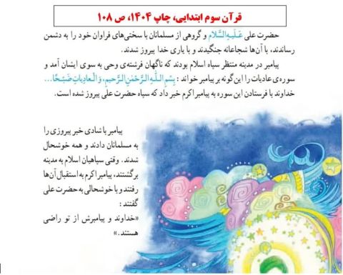بر این اساس، ادعای حذف معارف انقلاب و اهل بیت (علیهمالسلام) از کتابهای درسی دوره ابتدایی، ادعایی نادرست و تحریف واقعیت است و مایه تأسف است که برخی افراد، آگاهانه با تقطیع تصاویر، روایت نکردن کامل آنچه اتفاق افتاده، بیتوجهی عامدانه نسبت به محتوای دروس اصلی کتابهای قرآن و مطرح کردن عمومی-رسانهای مسئلهای که فرآیندهای کارشناسی خود را پشت سر گذاشته، به دنبال خدشه وارد کردن به اعتماد عمومی مردم در روزهای آغاز سال تحصیلی هستند.