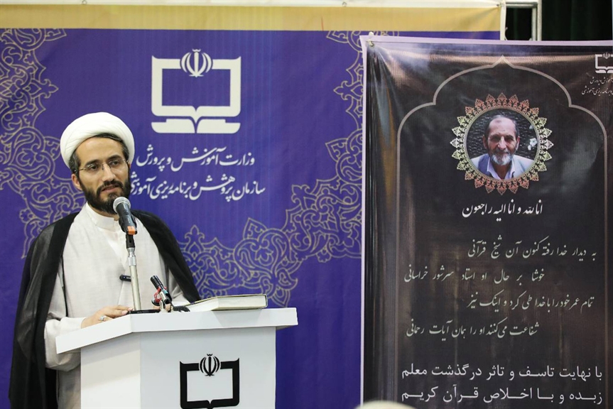 معاون وزیر و رئیس سازمان پژوهش و برنامهریزی آموزشی، در آیین بزرگداشت استاد غلامعباس سرشور خراسانی، ضمن تمجید از خدمات قرآنی او، گفت: استاد خراسانی نهتنها آموزگار قرآن بود، بلکه شخصیت و سلوکش، خود یادآور روح قرآن بود.
