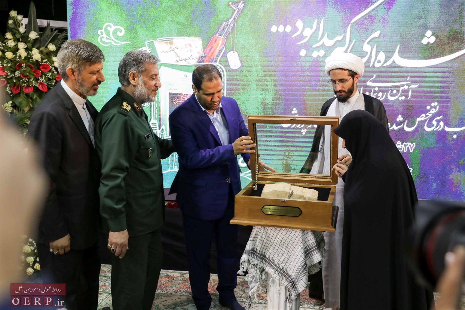 سردار ناصر سعيدي جانشین فرمانده کمیته جستجوی مفقودین ستاد کل نیرو‌های مسلح و مشاور بنياد حفظ آثار دفاع مقدس در معرفي اين كتاب گفت: اين كتاب و به تعبيري هدیه الهی ۱۱ مرداد امسال در منطقه شلمچه در نبرد اسلام و کفر و استکبار جهانی در منطقه حین تفحص ابدان شهدا يافته شد.