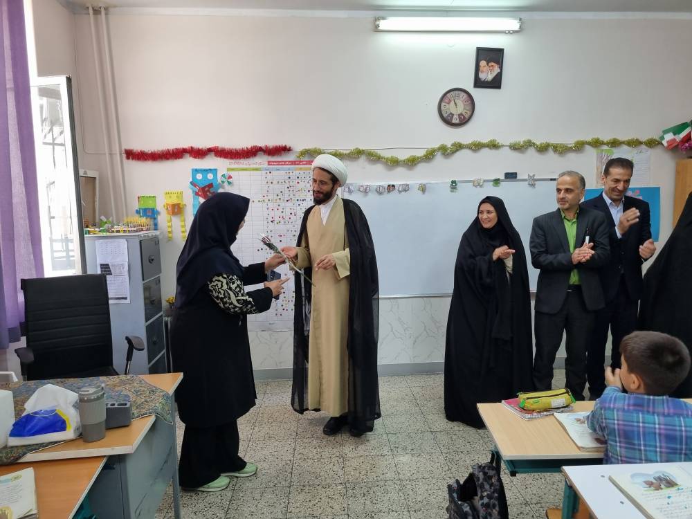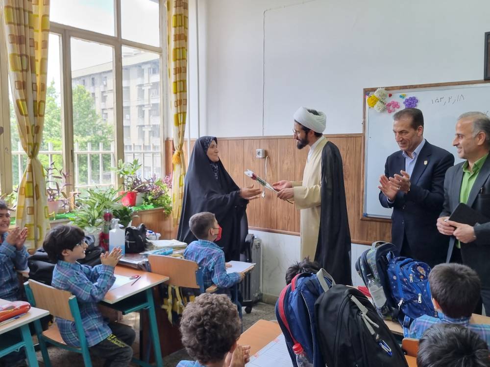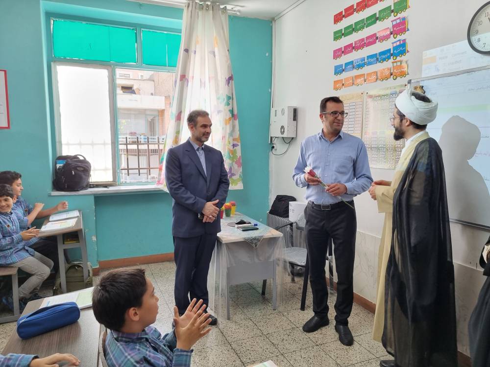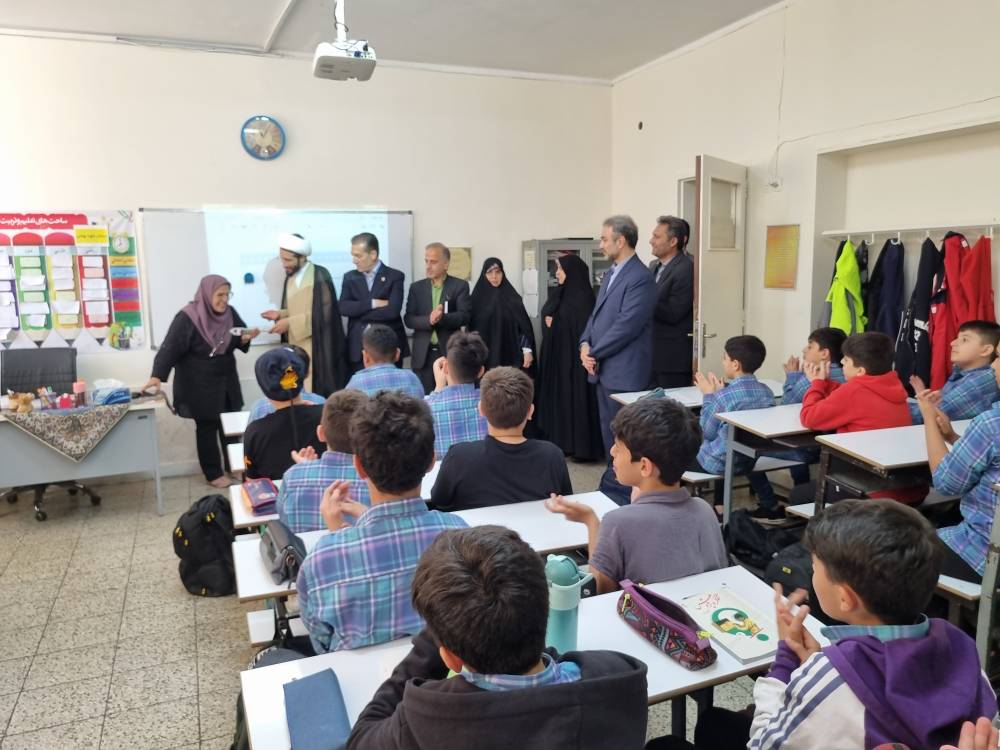 لطيفي ضمن تجليل و تكريم مقام معلمان و تشكر از همه زحمات ايشان، به گفتوگوي صميمانه با دانش آموزان و معلمان اين مدرسه و شنيدن نظرات آنان پيرامون كتابهاي درسي پرداخت.