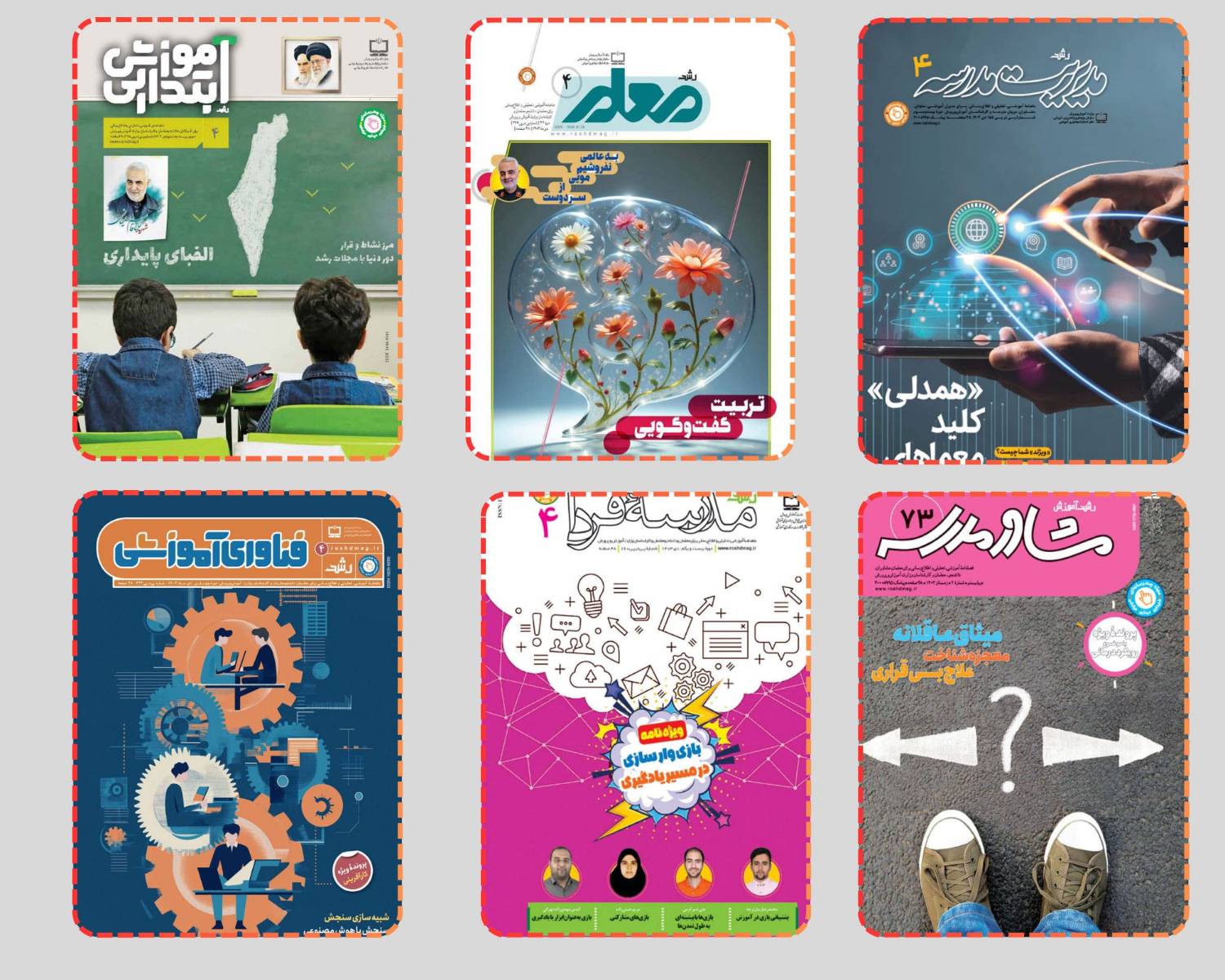 به گزارش واحد خبر و رسانه دفتر انتشارات و فناوری آموزشی، مجلههای آموزشی و تربیتی رشد معلم، رشد مدیریت مدرسه، رشد آموزش ابتدایی، رشد فناوری آموزشی و رشد مدرسه فردا از گروه ماهنامههای عمومی بزرگسال و رشد آموزش مشاور مدرسه، از گروه فصلنامههای تخصصی كه سازمان پژوهش و برنامهریزی آموزشی آنها را به عنوان جزئی از بستههای تربیت و یادگیری، در چارچوب اهداف نظام آموزشوپرورش جمهوري اسلامي ايران توليد و منتشر ميکند. در شمارههای چهارم از سال تحصيلي جاري، كه در ديماه به دست مخاطبانشان رسيدهاند، مطالبی با نگاه ویژه به سالگرد شهادت سيدالشهداي مدافعان حرم، سردار شهید حاج قاسم سلیمانی، و مزين به نام سردار رشيد اسلام، چاپ و منتشر شده است. بخشهایی از هر مجله را با هم ببینیم: