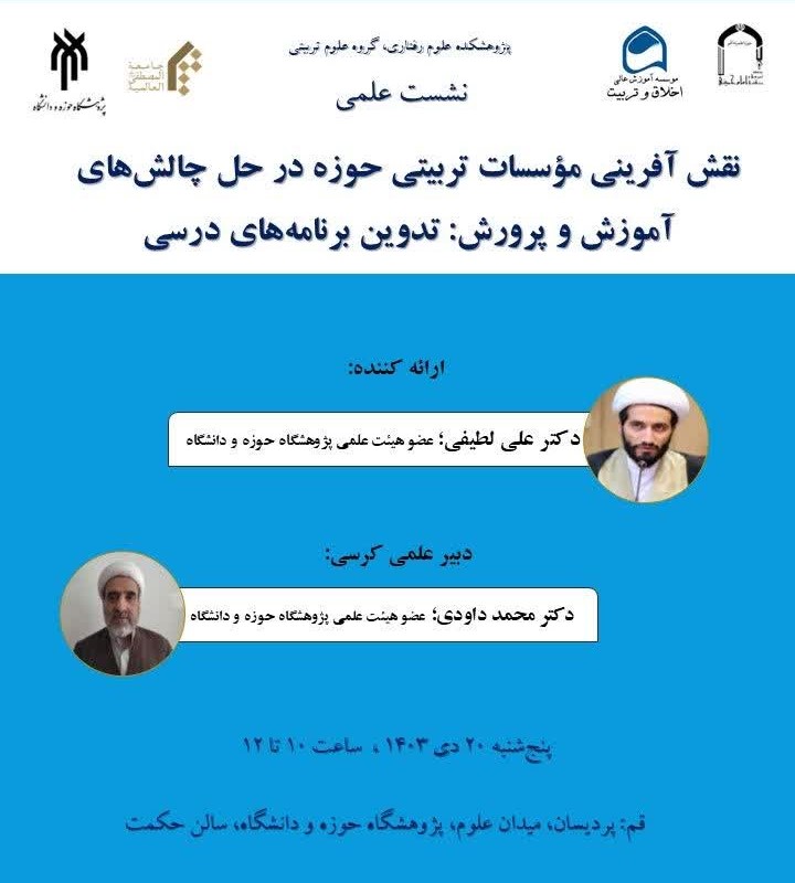 نشست علمی نقش آفرینی موسسات تربیتی حوزه در حل چالش های آموزش و پرورش: تدوین برنامه های درسی