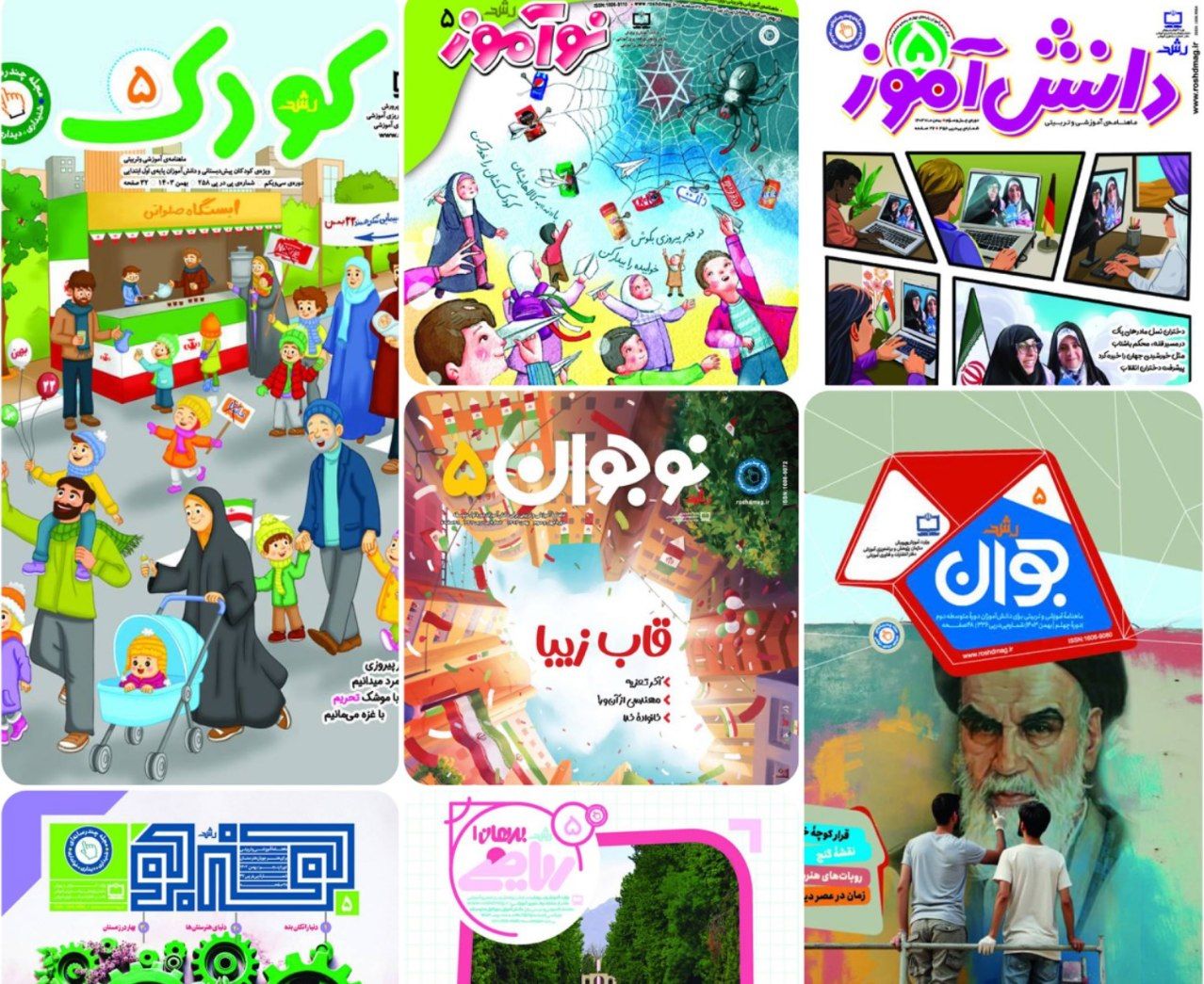 به گزارش اداره روابط عمومی و امور بینالملل سازمان پژوهش و برنامهریزی آموزشی و به نقل از پانا، ماهنامههای آموزشی و تربیتی رشد کودک، رشد نوآموز، رشد دانشآموز، رشد نوجوان، رشد جوان، رشد هنرجو و رشد برهان ریاضی دوره اول متوسطه، از گروه ماهنامههای ویژه دانشآموزان كه سازمان پژوهش و برنامهریزی آموزشی آنها را به عنوان جزئی از بستههای تربیت و یادگیری، در چارچوب اهداف نظام آموزشوپرورش جمهوري اسلامي ايران توليد و منتشر ميکند، در پنجمین شماره از سال تحصيلي جاري، كه در بهمن ماه به دست مخاطبانشان رسيدهاند، مطالبی را با نگاهی ویژه به اعیاد ماههای رجب و شعبان و چهلوششمین سالگرد پیروزی انقلاب اسلامی چاپ و منتشر کردند. بخشهایی از هر مجله را با هم ببینیم: