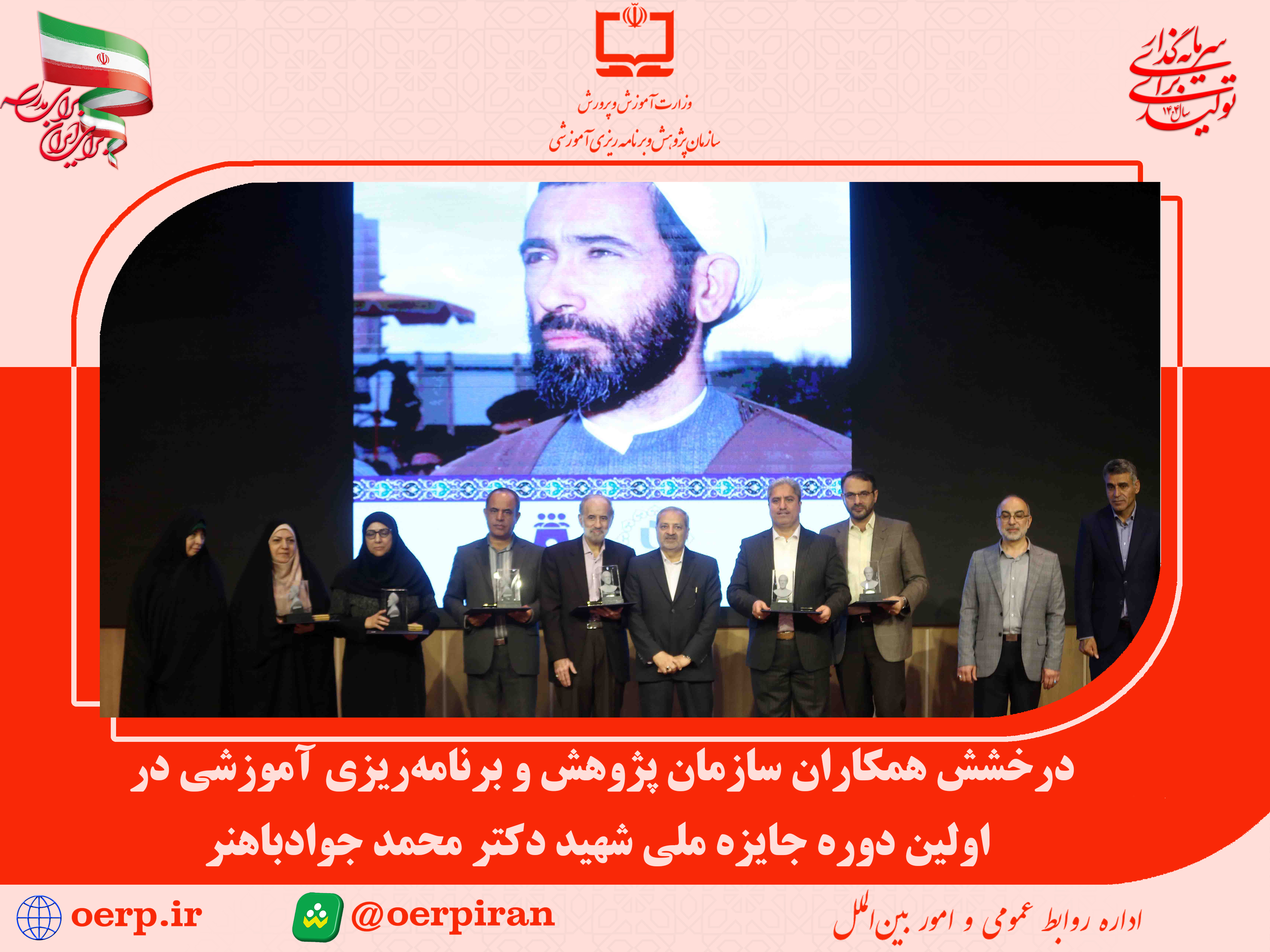 به گزارش روابط عمومی سازمان پژوهش و برنامهریزی آموزشی، در برگزاری اولین دوره از جایزه ملی شهید دكتر محمد جواد باهنر به میزبانی بنیاد فرهنگی رفاه، همكاران سازمان خوش درخشیدند و عناوین رتبه یک و شایسته تقدیر را از آنِ خود کردند.
