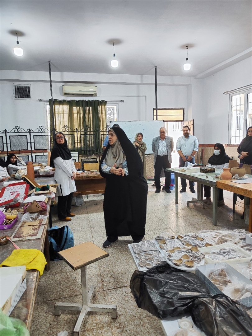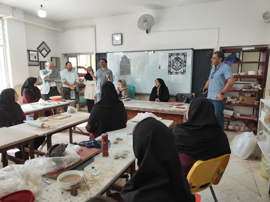در ادامه بازديد اعضاي محترم كميسيون در جمع هنرجويان پايه دهم و جديد الورود اين رشته حاضر شدند. مدير محترم هنرستان سركار خانم فراتي از بالاتر بودن ميانگين معدل وروديها گفتند و از كم بود امكانات و فضا  كه باعث شد در سال جاري با وجود تقاضاي بالاي هنرجويي امكان ثبت نام بيش از 20 نفر هنرجو در اين هنرستان فراهم نباشد. آقاي صادق باقري يكي ديگر از مولفان و اعضاي محترم كميسيون براي ايجاد انگيزه بيشتر از خاطرات و علاقمندي اوليه خود به رشته عكاسي و چگونگي تغيير به رشته هنر سراميك براي هنرجويان گفتند كه براي مخاطبان جذابيت داشت. همچنين در ادامه آقاي مجتبي قرباني شاه كوچكي از ميزان در آمد و وسعت كار در اين رشته براي هنرجويان توضيحاتي ارائه كردند. خانم گل بخش نيز در پايان اشاره داشتند كه با ورود هوش مصنوعي در بسياري از رشته ها و از بين رفتن برخي از مشاغل رشته صنايع دستي – هنر سراميك از جمله رشته هايي است كه مشاغل آن همچنان پايدار بوده و بازار كار خود را بخوبي حفظ كرده است.همچنين از تلاش و كوشش كادر آموزشي هنرستان و مدير محترم آن تشكر و قدرداني كردند.