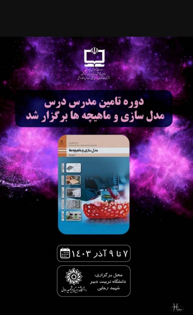 دوره تامین مدرسی کتاب نو نگاشت"مدل سازی و ماهیچه ها" پایه یازدهم رشته متالورژی شاخه فنی و حرفه ای در حال برگزاری میباشد.